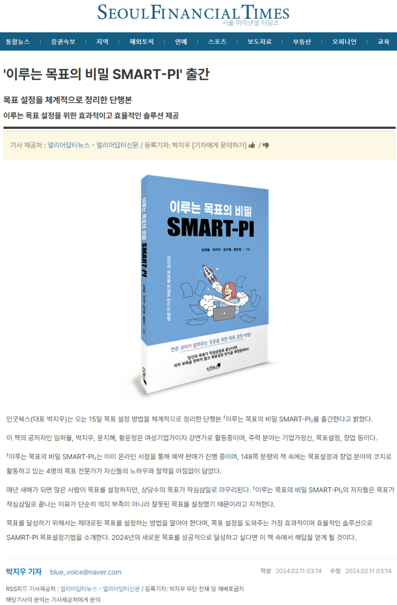 <ÀÌ·ç´Â ¸ñÇ¥ÀÇ ºñ¹Ð SMART-PI>°¡ Ãâ°£µÇ¾ú½À´Ï´Ù.