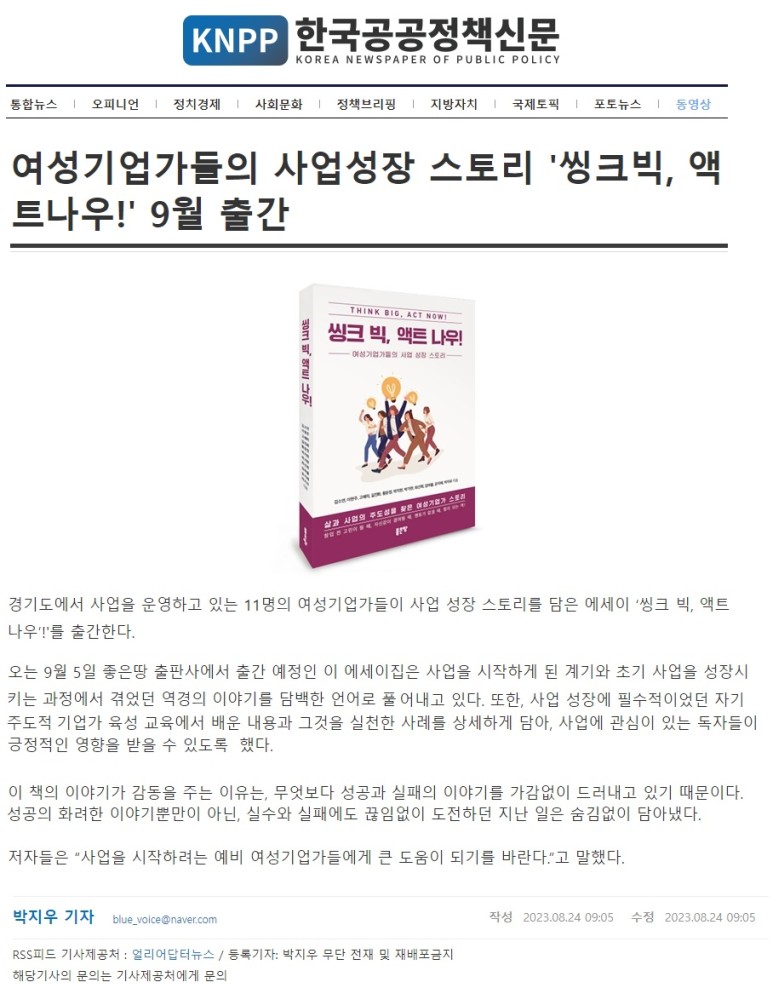[2023-08-24] ¿©¼º±â¾÷°¡µéÀÇ »ç¾÷¼ºÀå ½ºÅ丮 '¾ÅÅ©ºò, ¾×Æ®³ª¿ì' 9¿ù Ãâ°£