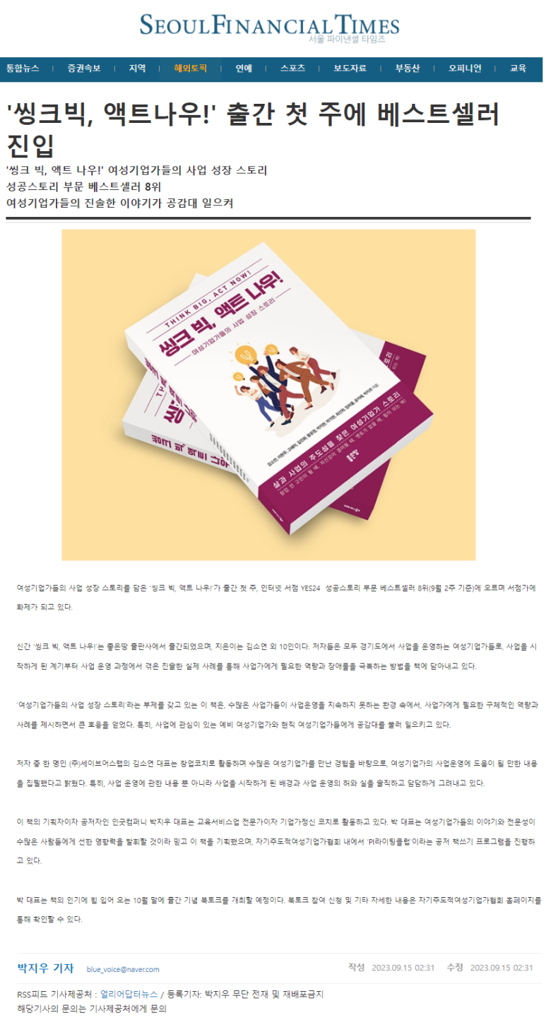 [2023-09-15] '¾ÅÅ©ºò, ¾×Æ®³ª¿ì!' Ãâ°£ ùÁÖ¿¡ º£½ºÆ®¼¿·¯ ÁøÀÔ